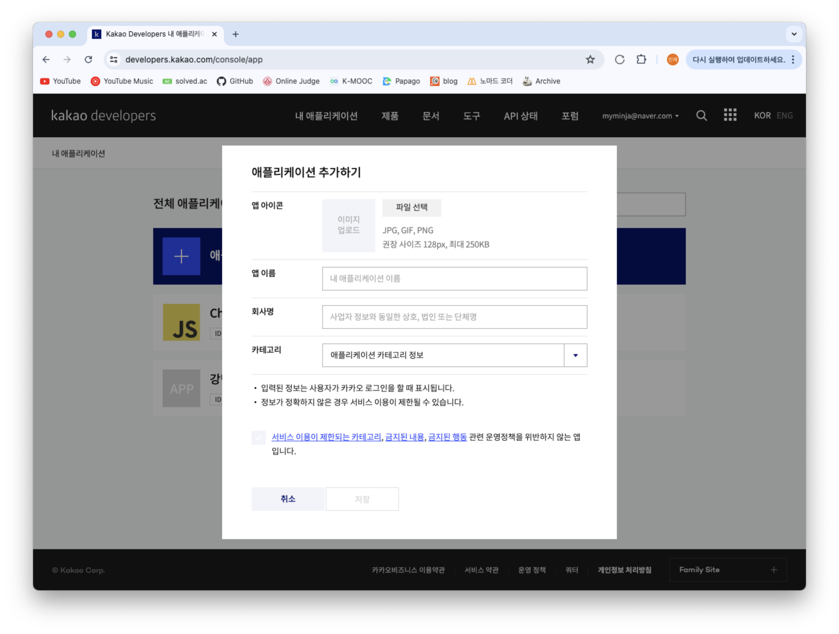 1. kakao developers 애플리케이션 등록하기